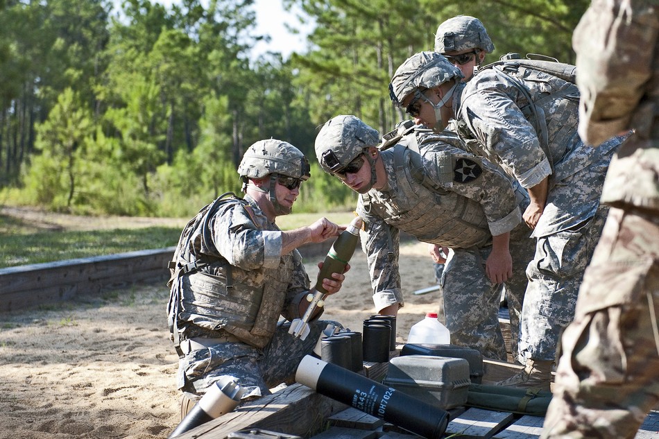 近日,美国陆军部队组织迫击炮实弹发射训练。训练中所使用的大口径迫击炮威力不小,在操作过程中美军士兵小心翼翼。
