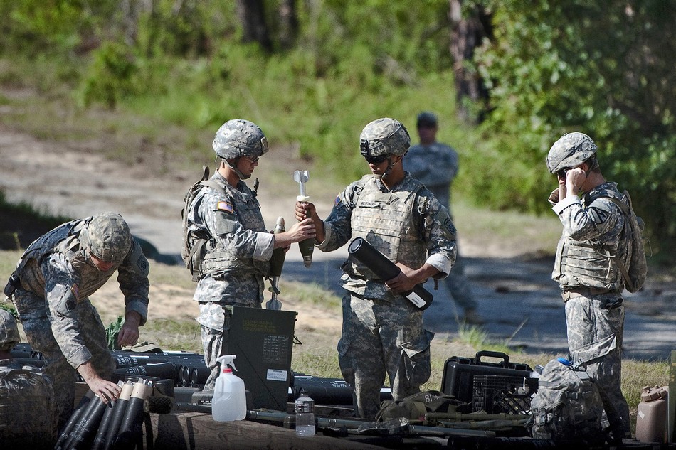 近日,美国陆军部队组织迫击炮实弹发射训练。训练中所使用的大口径迫击炮威力不小,在操作过程中美军士兵小心翼翼。