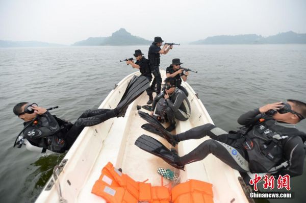 重庆作为一个滨水城市,境内河流湖泊众多。三峡工程完成蓄水后,出现了129个岛屿和众多的港湾、湖泊,当地水域总面积达1万平方公里以上,约占该市总面积的八分之一。为了完成在重庆各水域水上抢险、水下救援和打击犯罪、处理突发事件,2012年重庆公安蛙人突击队应运而生。连日来,这支蛙人突击队在重庆多种水域进行了涉水科目例行训练,训练科目包括游泳基础训练、武装泅渡、冲锋舟驾驶及搭载、潜水训练等。杨帆 摄