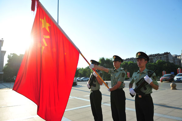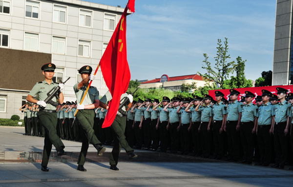 在庆祝建军88周年之际,总装备部驻苏某部举行“重温入伍誓词,牢记强军使命”向军旗宣誓活动,着力强化“没有永远的荣誉,只有不懈的追求”的理念,激励官兵处处严要求、事事争第一、样样创最佳的信心和决心,圆满完成以备战打仗为中心的各项警勤保障工作任务。冷桂春、陶正齐、李俊杰摄影报道