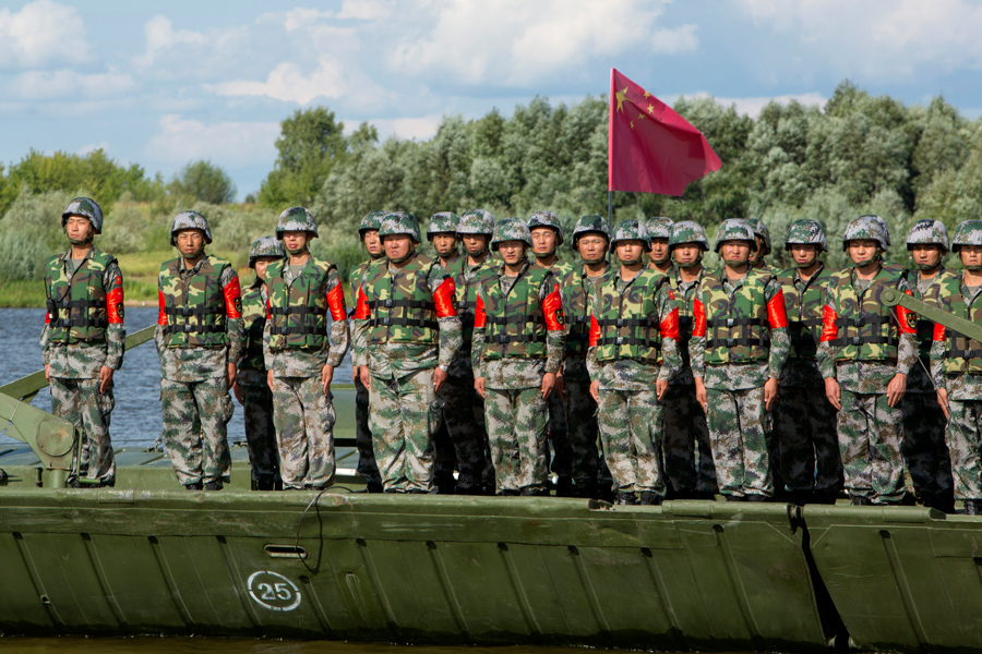 8月3日,解放军赴俄罗斯参赛舟桥部队与俄罗斯、白俄罗斯两支参赛部队共同参加开幕式检阅仪式!