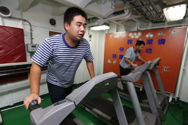 下午4点,主炮兵马天丰在跑步机上大汗淋漓。随着远海训练任务的常态化开展,新型舰艇为提升官兵的体能素质,都开设了专门的健身房,并迅速成为官兵们最喜欢去的地方。
