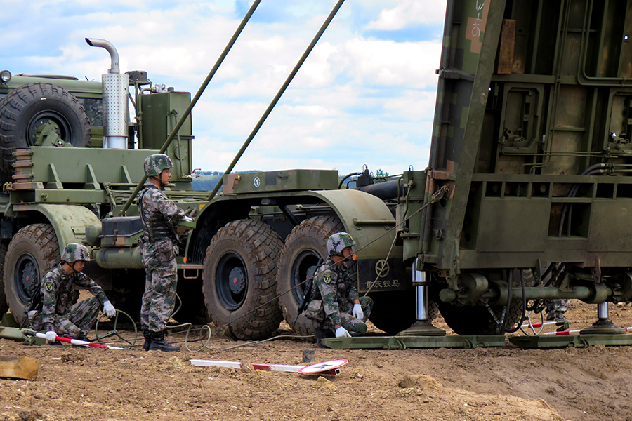 解放军先进工程车在俄威武作业