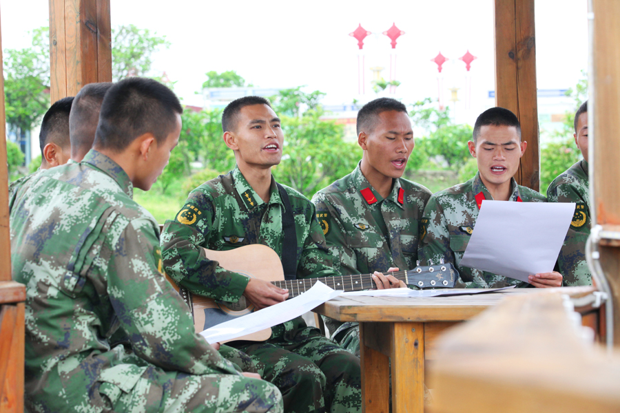 业余时间里,赵勇波喜欢弹吉他,与官兵们一起自娱自乐。