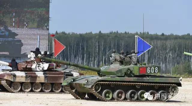 8月4日,莫斯科阿拉比诺,在2015年俄罗斯国际军事比赛“坦克两项”竞赛单车赛中,我军代表队608号车组驾驭96A式坦克,顺利完成了第二小组的比赛。
