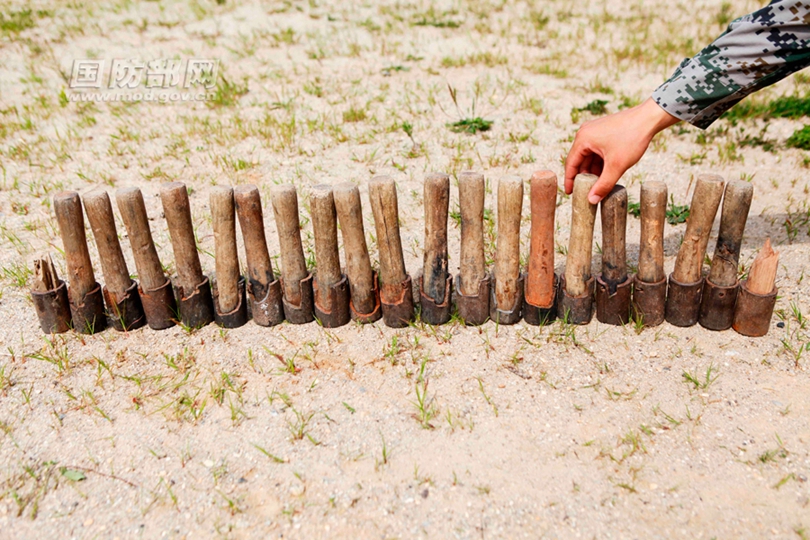 该连指导员李庆介绍:全连百余名官兵,平均每人每天至少手榴弹投掷100余枚,全连日投弹10000余枚。半年下来,地坑靶被砸宽了至少半米,镜框靶换了三个,手榴弹损坏了2000余枚。