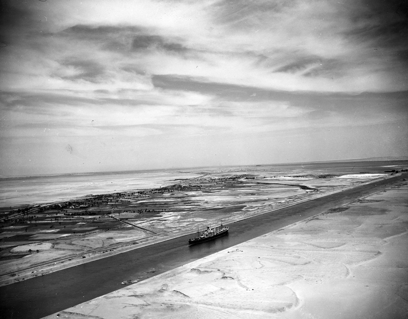 这是1953年5月26日在埃及伊斯梅利亚附近拍摄的苏伊士运河航拍资料照片。 新华社/美联