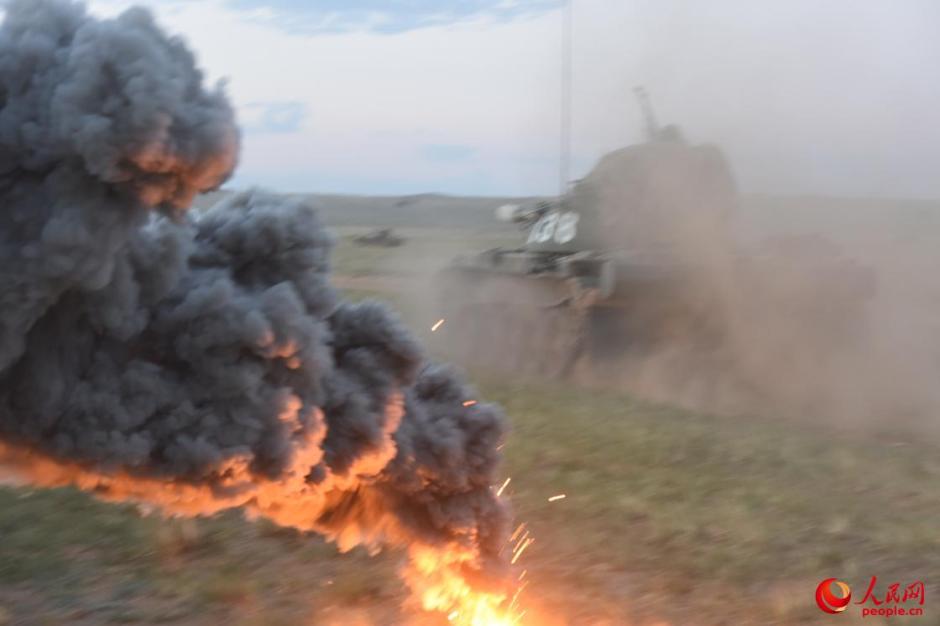 解放军空地联合进攻 坦克被打冒黑烟
