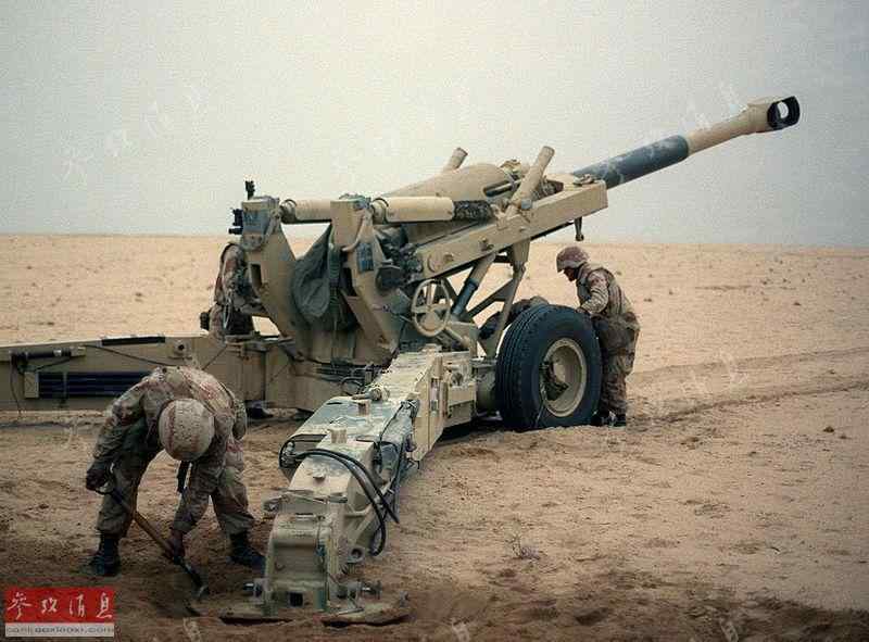 图为美海军陆战队士兵展开M198牵引榴弹炮。