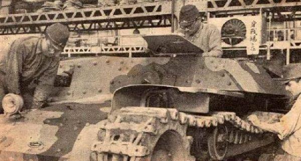 日本兵工厂里的坦克生产线。