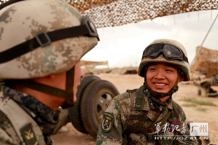林文健的笑容很迷人,无论遇到什么困难,他都习惯用微笑去面对。演习地域昼夜温差近20度,经常狂风肆虐、黄沙漫天。林文健和他的战友们第一天抵达这里,就遇到了龙卷风。