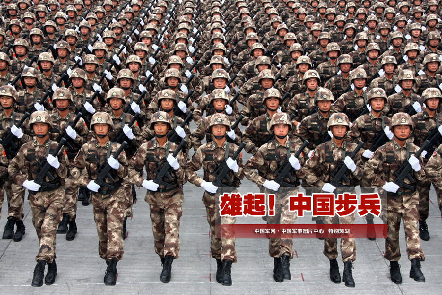 中国共产党领导的人民军队从小到大、从弱到强,经历了长期的残酷的革命战争,用梭标长矛,小米加米枪,用缴获敌人的机枪大炮武装自已,紧紧地和中国人民站在一起,战胜了强大的内外敌人,建立了新中国,锤炼出战无不胜的步兵部队。继承着优良传统的中国人民解放军步兵,在建国以后的六十多年的岁月中,在革命化、现代化、正规化的道路上前进,从武器装备、编制体制上不断发展,有了长足的进步。今天,中国人民解放军的步兵、地面部队己发展成为诸兵种合成的雄师劲旅,执行特殊地面作战任务的海军陆战队,空军空降兵的战斗力也不断提高。