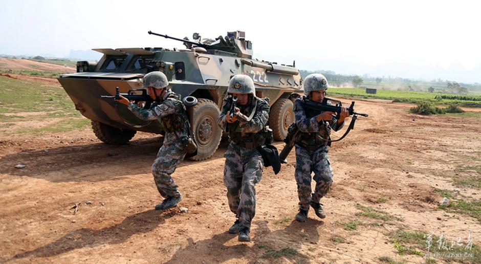 8月12日,41集团军某机步旅在野外展开高强度的军事训练,用实际行动在驻训场践行强军目标,立起了军人的样子,呈现出个个争当“四有”新一代革命军人的浓厚氛围。图为该旅装步连官兵正在组织战术训练。(张力、刘天行)