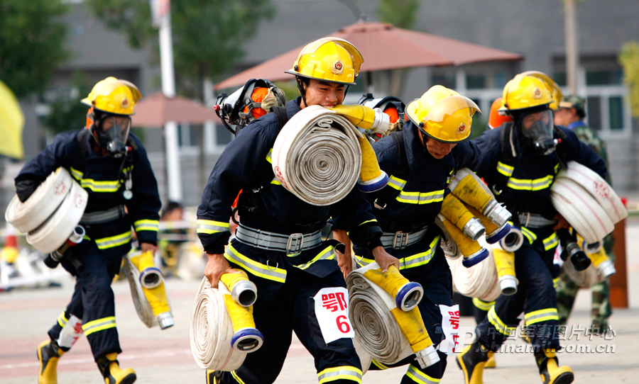 要想在现场多救人,就得在平时下苦功。图为武警湖北省消防官兵进行初战快速出水控火操比赛。