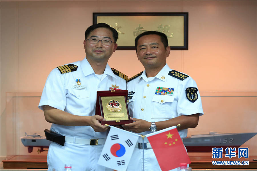 中韩海军护航编队指挥官在亚丁湾进行会面交流