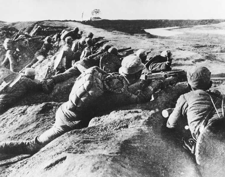 1937年抗日战争全面爆发后,中国共产党在南方八省的红军及游击队改编为国民革命军陆军新编第四军(简称新四军)。这是1938年11月3日,新四军战士在马家园战斗中打击敌人。新华社发