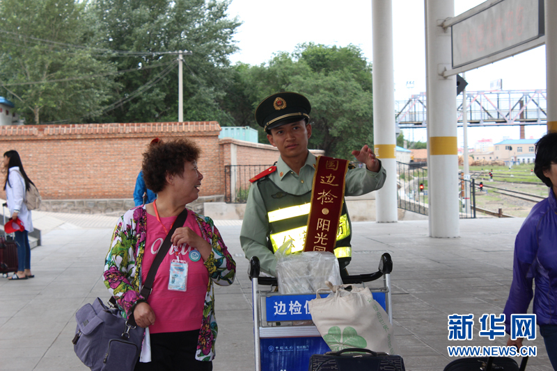 为做好跨境旅游专列的通关工作,边检站提前制定勤务方案,主动与组团旅行社联系接洽,掌握旅游团成员信息并进行预检预录,最大限度地缩短了专列的通关时间,同时积极协调海关、检验检疫等联检单位启动联勤协作机制,有效提升了口岸整体通关服务效能。边检站开通绿色专用通道,由业务骨干组成的勤务小组负责专列查验任务,并指派台外检查员对旅游团进行靠前引导,确保旅游团快捷通关。在执勤现场组织“便民服务小分队”,主动为旅游团成员详细介绍口岸通关程序、旅游注意事项、俄罗斯人文地理和民俗风情等概况,提供中国边检部门24小时咨询服务热线,发放出入境便民服务卡和法律法规宣传册,积极营造了温馨和谐的通关环境,极大地方便了旅游团的出行。