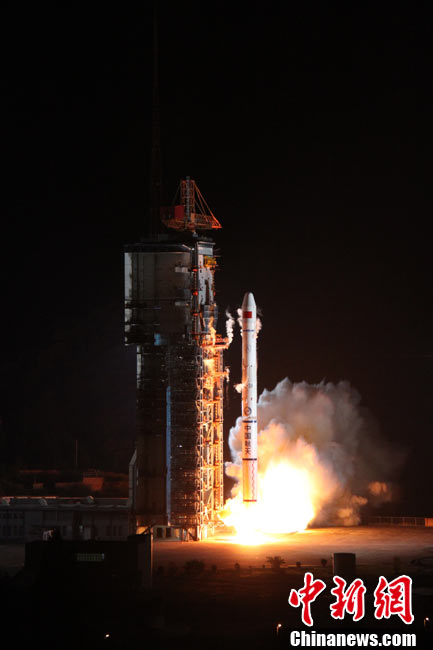 资料图:北京时间25日0时9分,中国在西昌卫星发射中心用“长征三号甲”运载火箭,将“中星-20A”通信广播卫星成功送入太空预定轨道。中新网发 王玉磊 摄