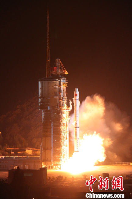 资料图:北京时间25日0时9分,中国在西昌卫星发射中心用“长征三号甲”运载火箭,将“中星-20A”通信广播卫星成功送入太空预定轨道。中新网发 王玉磊 摄
