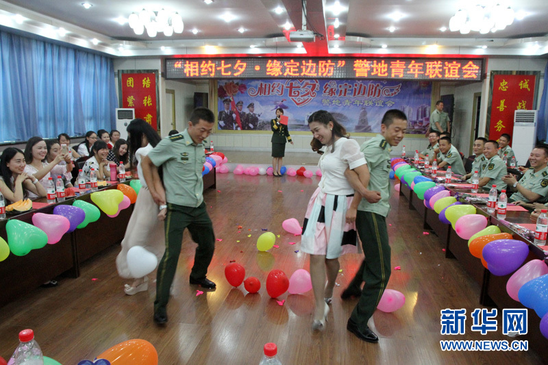 16日,新疆边防总队阿克苏边防支队18名未婚青年警官在活动中充分展示了各自的才艺,在“缘分背靠背·相识面对面” 、“爱的传递”、“爱的争取”、“爱的协作”、“七夕寻缘向前冲”等节目中,通过自我介绍,与地方女青年互相搭对,在互相协作和配合中进一步加深彼此之间的了解。