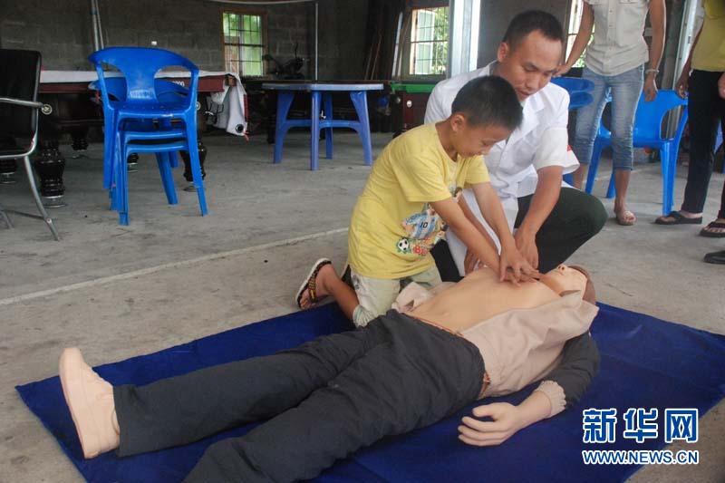 边防医务人员指导小朋友现场进行心肺复苏训练