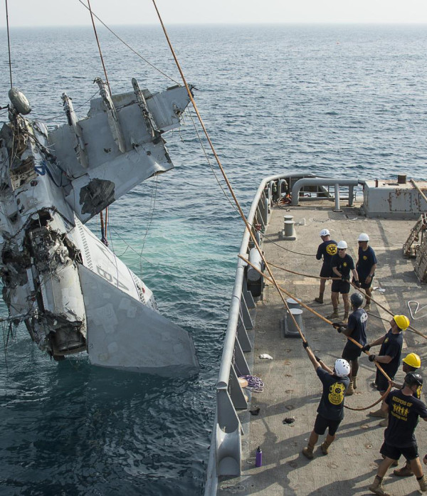 美国海军打捞起一架坠海舰载机 士兵欢呼