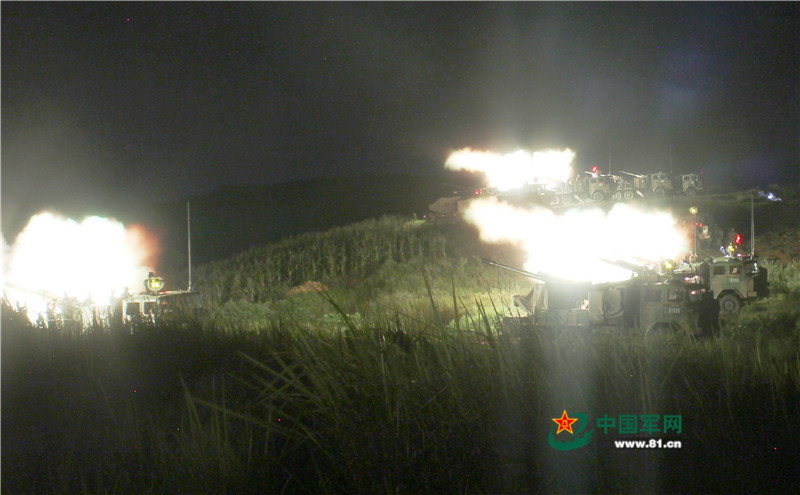 8月15日,第41集团军某山地步兵旅组织炮兵分队夜间实弹射击,锤炼部队夜间作战能力。图为某型车载榴弹炮发射瞬间。张正举摄