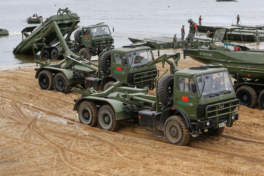 组图:中国陆军两栖“巨兽”水上变形