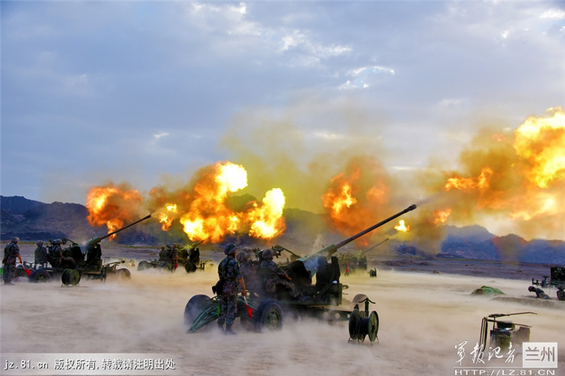 军报记者兰州分社(董浩) 近日,天山脚下某演兵场上烈日如火,兰州军区某高炮团实弹射击场硝烟滚滚,一场立足实战条件下的高炮实弹射击演练拉开帷幕。据了解,此次实弹演练突出复杂条件下对空防御,采取不设私情、临机导调、快速开火的方法,历时30余小时,消耗弹药数千发,多项实战条件下防空作战训练成果得到全面检验,进一步夯实了部队快速完成防空作战的能力。据了解,今年驻训以来,该团党委“一班人”瞄准“打得响、打得准”,积极研究探讨训练方式方法,对着教材学,瞄准打赢练,正确引领全体官兵积极投身强军实践,创新训练方法,研究作战技能,重视人与装的无缝结合,实现了整体防空作战能力的快速提升。