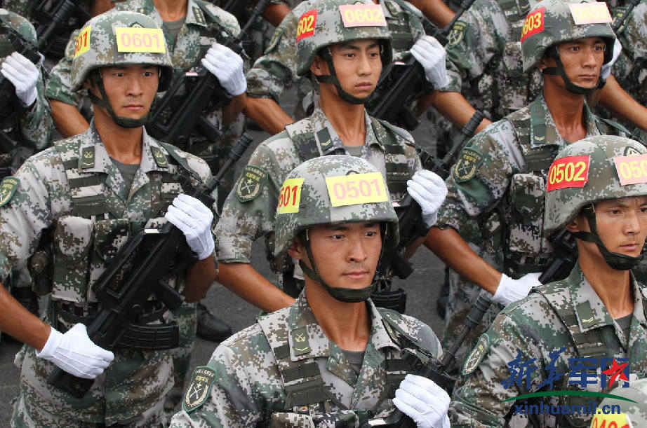 百团大战“白刃格斗英雄连”英模部队方队——队列中的双胞胎兄弟 陈曦摄