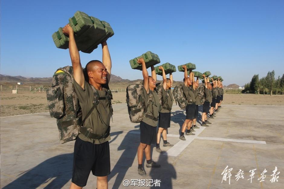 解放军边防兵体能训练花样不少 弹药箱是主要道具