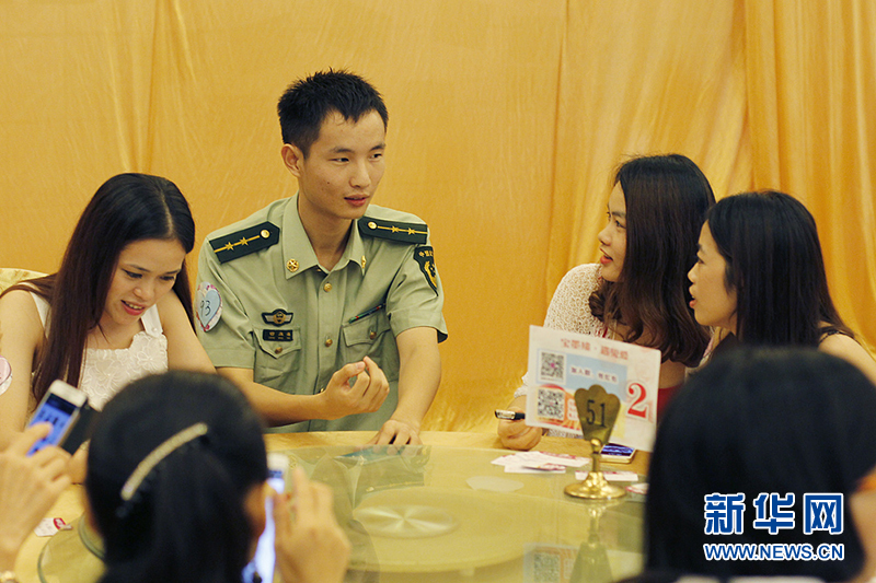 20日16时,由广东省广州番禺宝墨园主办的“宝墨缘遇见爱——2015七夕单身男女大型联谊活动”在广州举行,吸引社会各界单身人士踊跃参加,广东边防总队广州边防支队未婚官兵应邀参加此次活动。