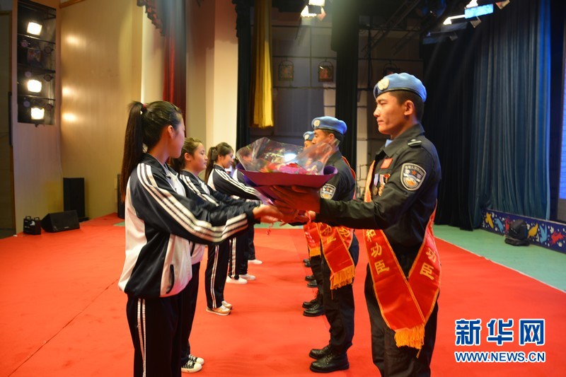 学生向维和英雄献花