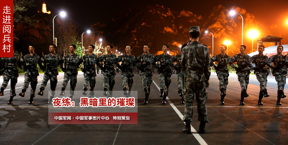 纪念中国人民抗日战争暨世界反法西斯战争胜利70周年阅兵式日渐临近,广大网友更充满期待。即将走向天安门广场的钢铁方阵,是一个怎样的面貌、怎样的阵容?他们来自哪里?组成编成有什么新特点、新亮点?受阅部队的训练如何?生活如何…… 8月21日,中国军网推出“走进阅兵村”系列图集,第一时间把网友“带”到火热的阅兵训练场,向网友展示摄影记者在阅兵村的所闻所见、所感所悟。相信他们将满足网友的期待,向网友讲述许多前所未闻的故事,当然,我们还会保留一点神秘,等待把最多的惊喜留给9月3日大阅兵的那一天,与祖国和人民共同分享那壮美的时刻。本图集集合了参阅官兵在夜晚训练的场景,让我们撩起夜幕去感受参阅官兵的训练热情和精神风貌。