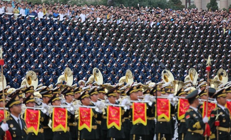 这是参加演练的解放军联合军乐团、合唱团(8月23日摄)。新华社记者 李刚 摄