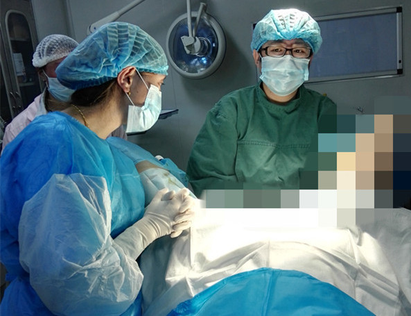 左贡县卫生服务中心条件有限,没有血,没有输血条件,术前术后都无法及时查凝血和生化。但是,如果不手术,孕产妇会子宫破裂,大出血。孕产妇生命危在旦夕,已经出现了子宫病理缩复环,也就是先兆子宫破裂,若不及时处理,定会发生子宫破裂、羊水栓塞,她的情况已经没有转上级医院抢救的机会了。医疗队员紧急商量,并远程请示了远在北京的医院妇产科主任童英和副主任刘华平,决定立即进行剖宫产手术。