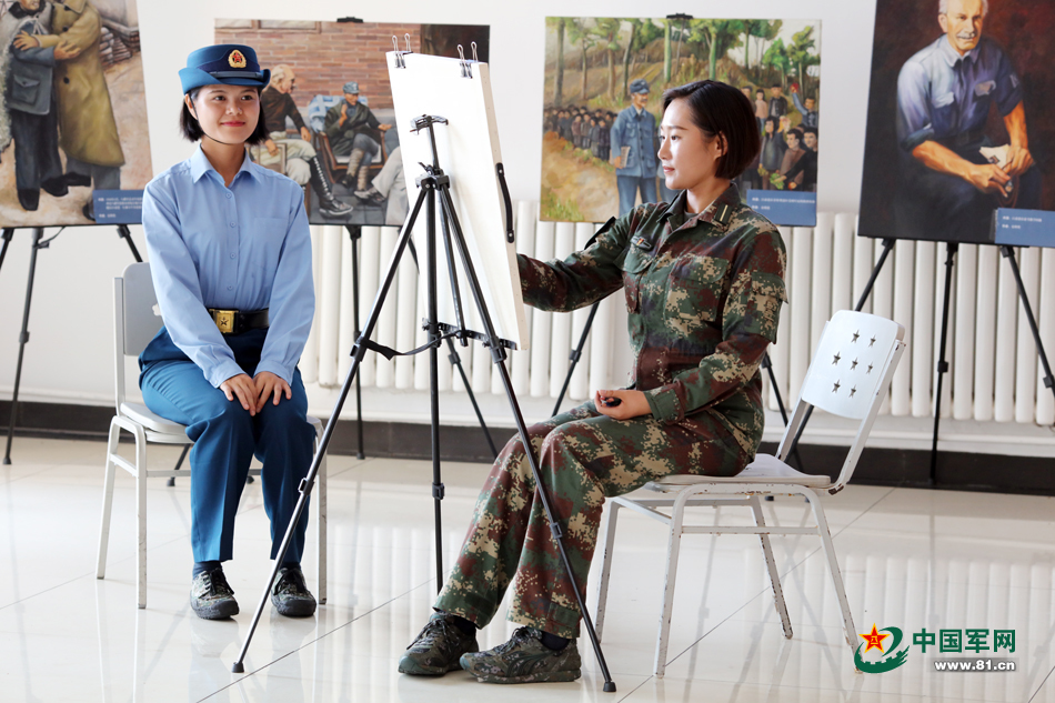 史明艳为队友李小霞作画。记者宣琦 摄