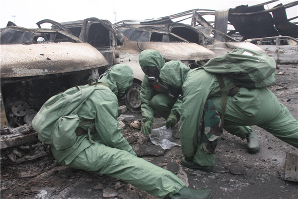 北京卫戍区某防化团官兵深入核心爆炸区采集样本。任强 摄