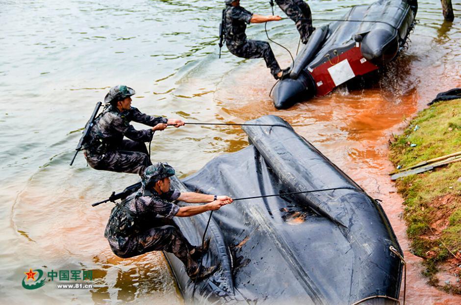 解放军军校学员水下爆破突袭 蛙人武装泅渡