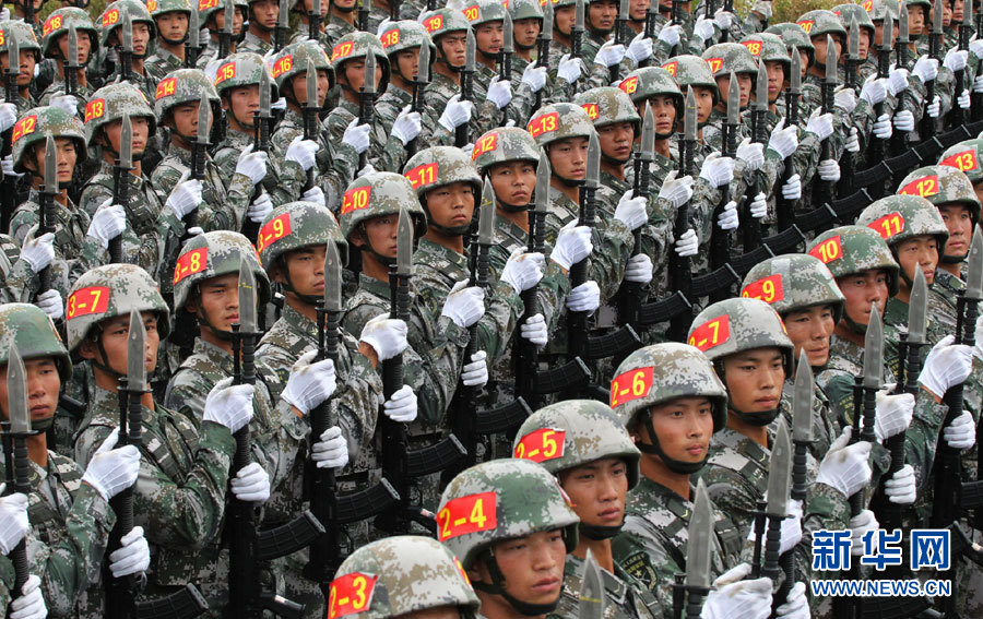 “平型关大战突击连”英模部队方队在阅兵训练基地训练(7月15日摄)。新华社发(陈曦 摄)