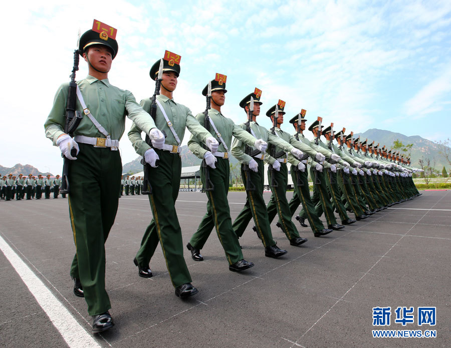 武警部队抗战英模部队方队官兵在阅兵训练基地进行训练(7月24日摄)。新华社记者 查春明 摄