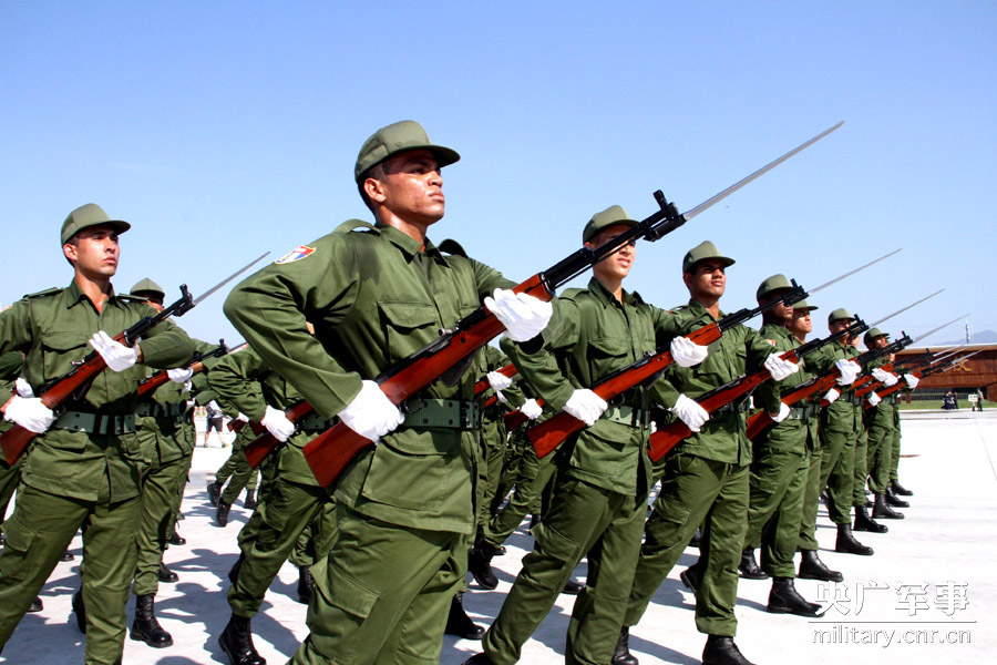 前来参阅的古巴方队正在进行训练 央广军事彭洪霞摄