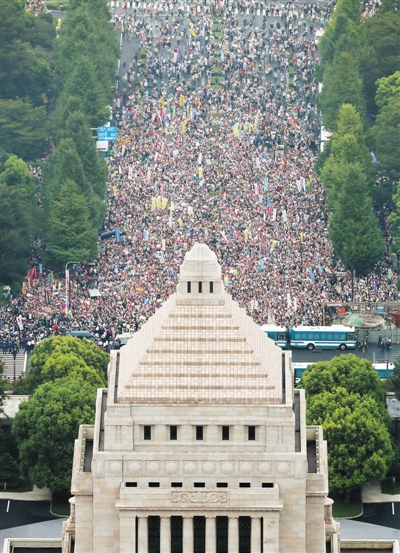 12万人围堵日国会 要求废除“战争法案”