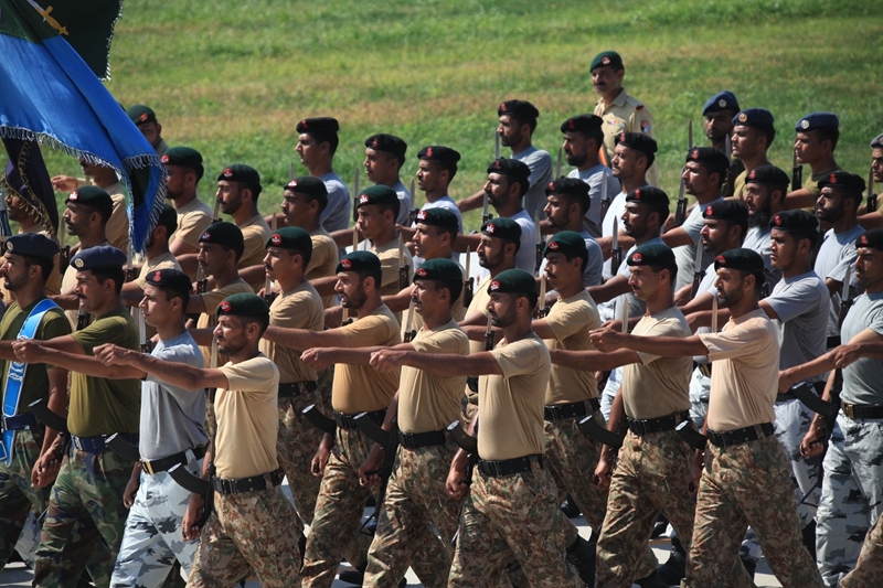 8月28日,巴基斯坦参阅方队在外军阅兵训练基地进行训练。新华社发(田丰 摄)