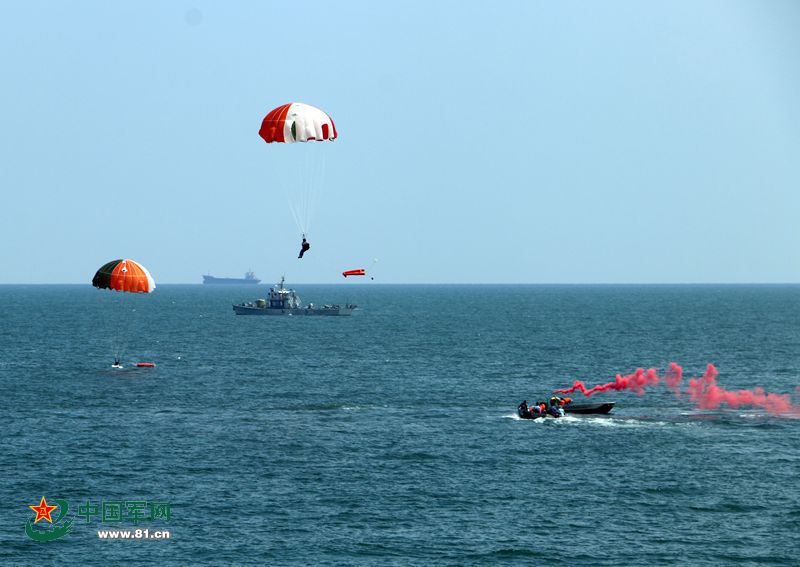 8月23日,海军航空兵学院某团组织飞行员进行海上跳伞训练,进一步锤炼飞行人员海上自救和遂行军事任务能力。