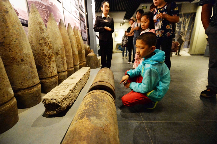 8月31日,参观者在侵华日军虎头要塞遗址博物馆内参观。新华社记者