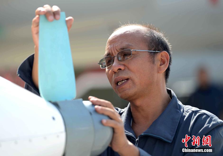 潘老并不老,也就五十刚出头,当年谈恋爱时,稚嫩的小潘一脸娃娃相,老婆单位的人说:你怎么带了个娃子来了。”35年的机务兵在机场日晒雨淋,如今的老潘竟显得比老婆还大十几岁。 中新社发 沈玲 摄