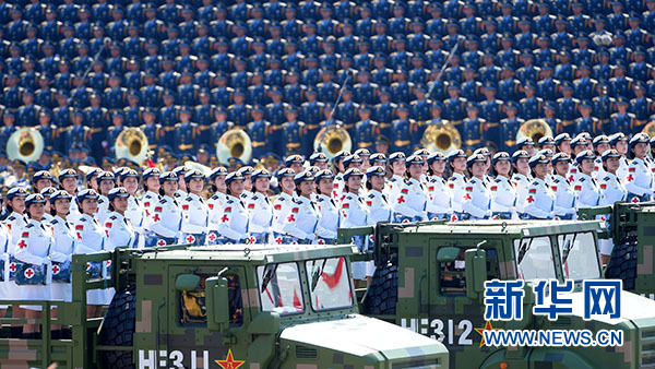 白求恩医疗方队通过天安门广场。 新华社记者 程敏 摄
