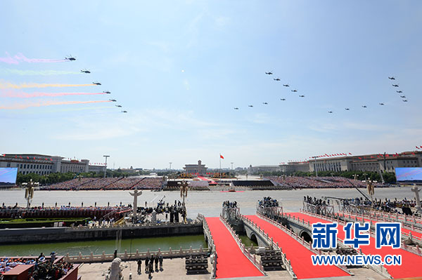 直升机梯队接受检阅。 新华社记者 赵鹏 摄