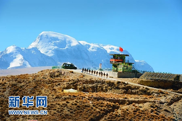 西藏军区岗巴边防营官兵离开哨所,前出巡逻(2012年11月11日摄)。新华社发